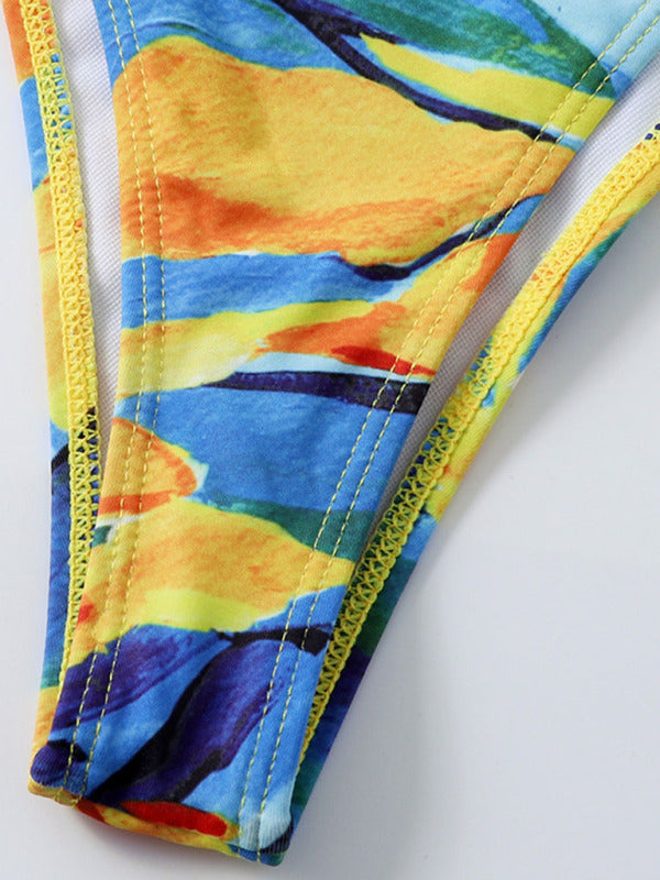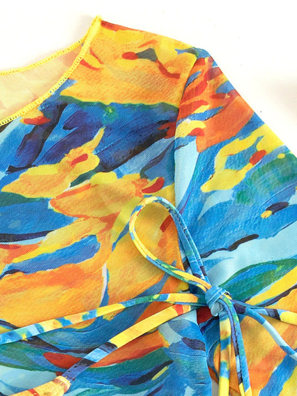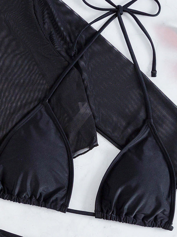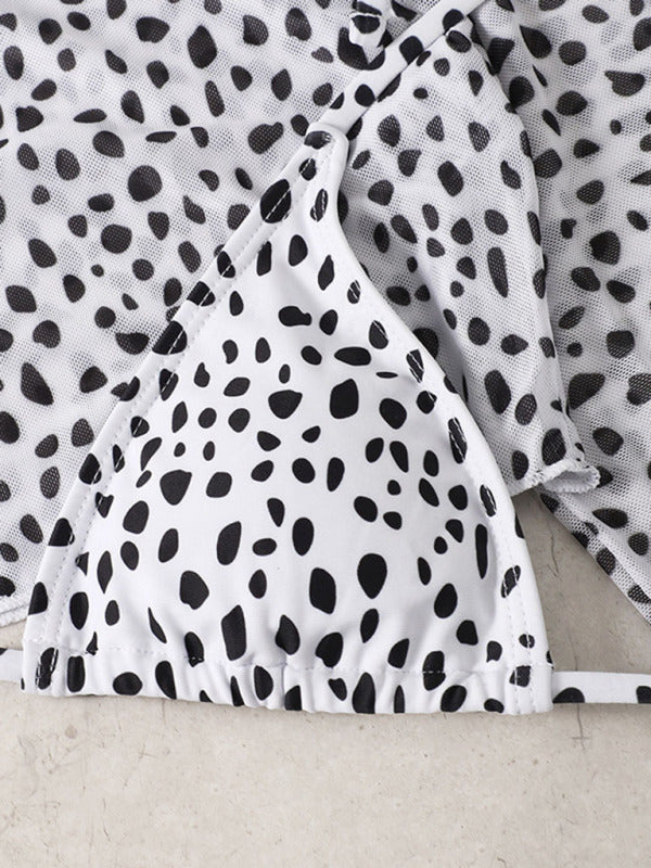 New long-sleeved mesh jacket three-piece leopard print sexy bikini swimsuit