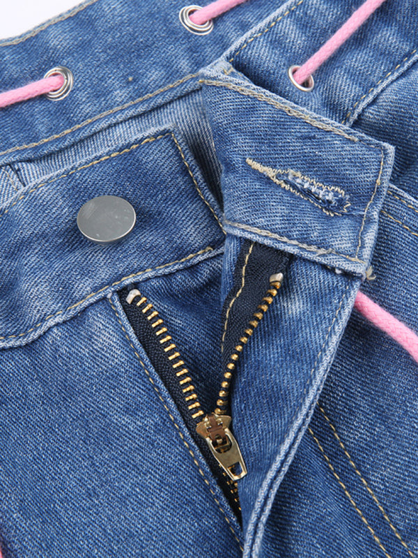 Women's Contrasting Color Heart Graffiti Print Loose Jeans